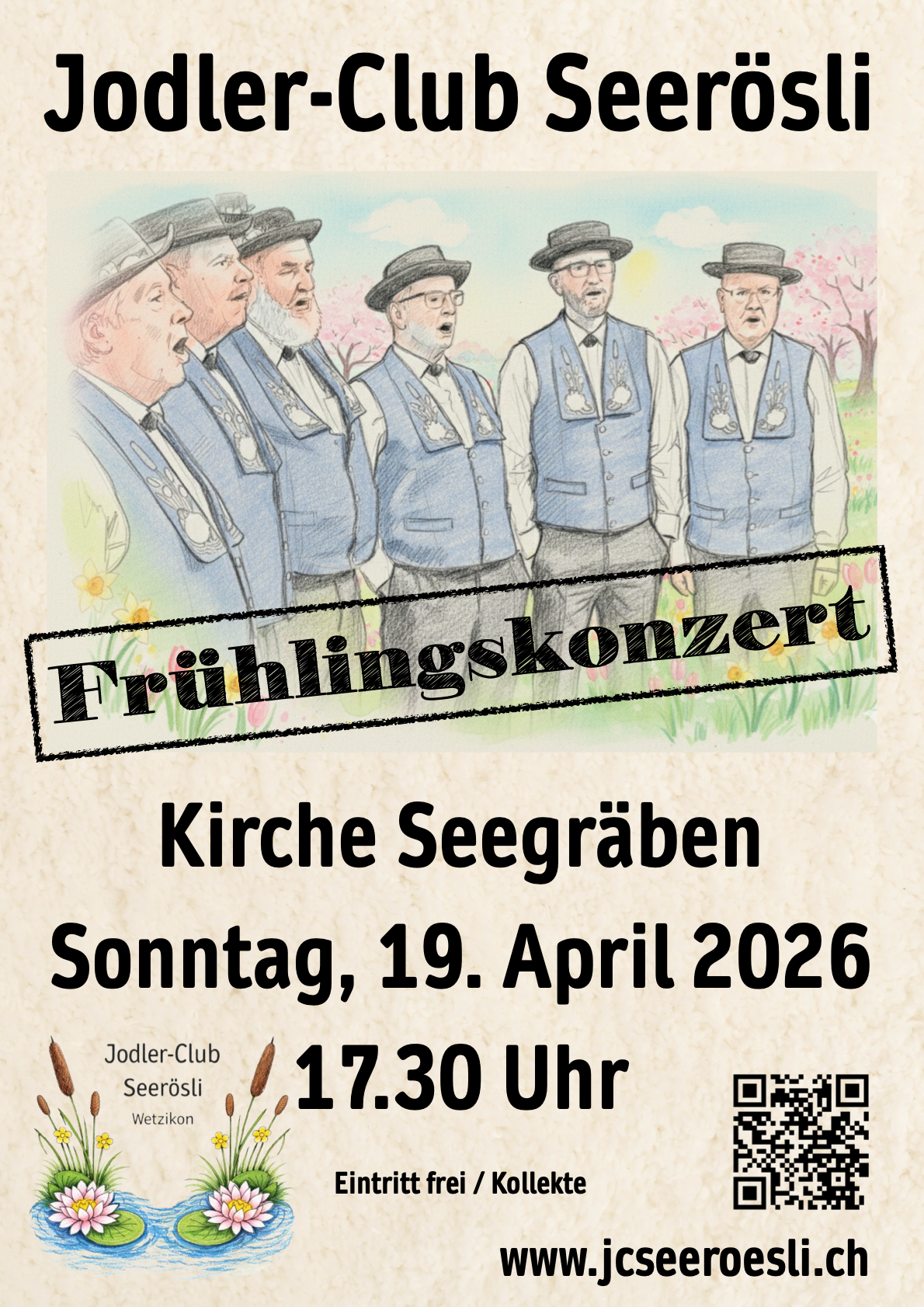 Und wills so schön gsi isch: Auf ein Neues! Gerne laden wir Euch zum Frühlingskonzert am Sonntag, 19. April 2026 in der Kirche Seegräben ein.